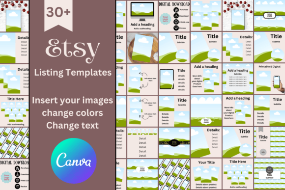 30+ Customizable Etsy Listing Canva Template Set for Digital Products with Bonus Free PDF Link Template